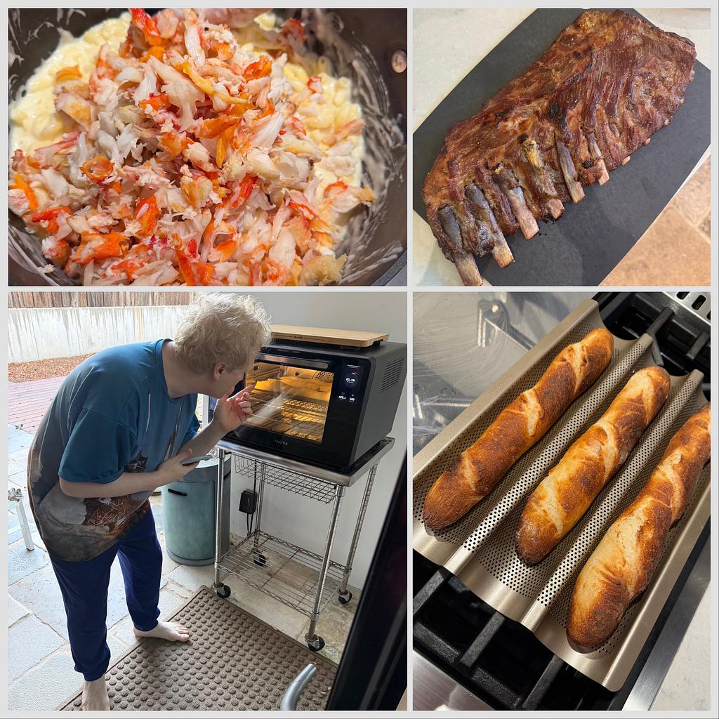 Louis checking out the new Anova steam oven. Various indulgence foods that were enjoyed including double crab mac n cheese, steak, and homemade bread.