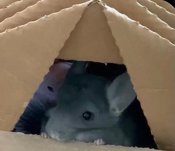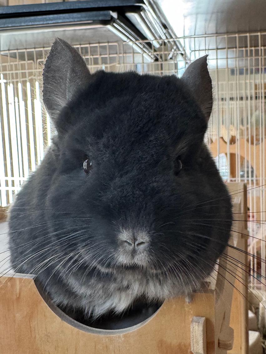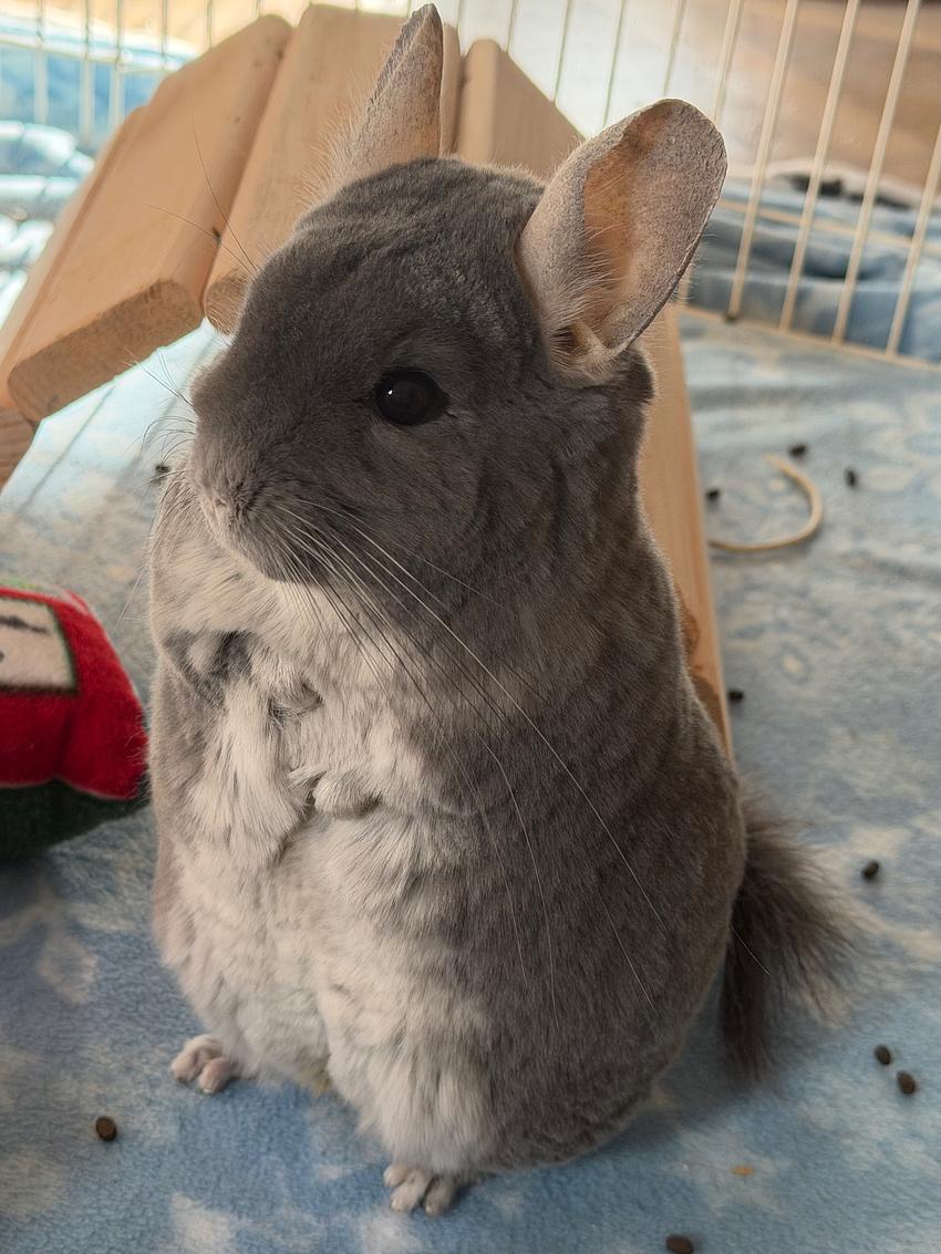 Cheska, 13 years old, Black Velvet Chinchilla (Chinchilla chinchilla, formerly Chinchilla brevicaudata). Cheska is sassy, stubborn and food-motivated.